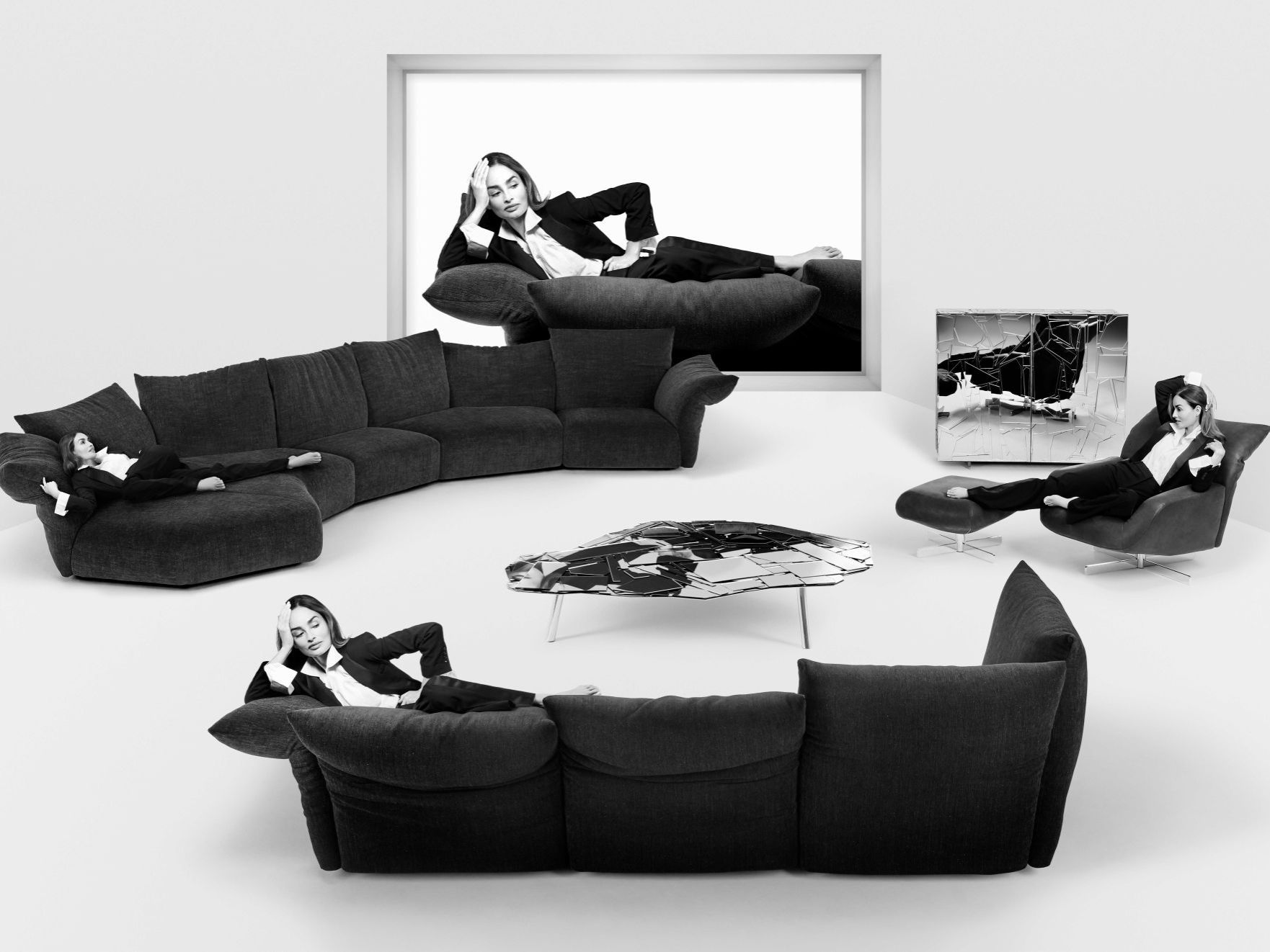 Our authors do not just show us a drawing, they tell us an idea, a story, a dream. It’s a method that is closer to the world of art than that of design. Together, we try to find the best solution, to take a step further, to create ‘something else’, something different from the product as we know it: the sofa, the chair, the armchair … And this is achieved through an experience that sees the author sparking off a brainwave, a shared story. “I hate the word ‘art director’ – Massimo Morozzi explained in an interview in 2013 – Ettore Sottsass defined himself as a ‘head gardener’. That’s how I feel, I am the one who looks after the seeds and makes them grow. Our history is made of cultivated human experiences and relations with ‘designers’ that are certainly professional, but basically human, relations. We are not so interested in design, we are interested in the opportunities that this job provides, of having relations with other people. Such experiences then settle into things. It’s like shooting a film. Behind any project, there’s a story that comes from a life experience. Such experiences turn into furniture”. And Francesco Binfaré adds: “I am interested in people and in what they have on their minds. For me, things are bagfuls of contents and messages. Designers don’t do anything on their own, and neither do art directors, or businessmen. We come from a world where there were Buster Keaton and Charlie Chaplin, such great actors, where one man keeps everything together. In fact, we get into a world where there are Fellini, Mastroianni and De Laurentis. It takes all three men, and in this cooperation designers put their stories into a sofa”.