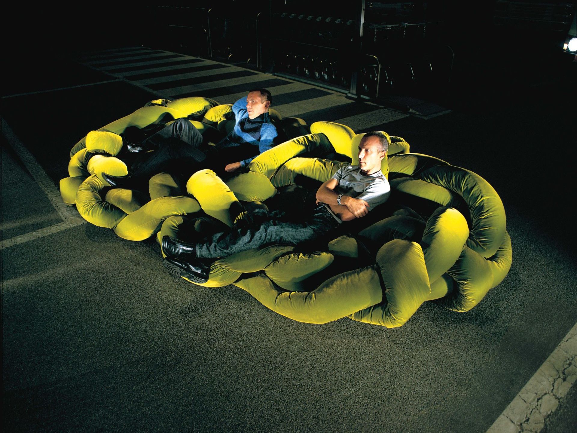 L es frères Campana ont le sens… conscience, intuition, sensibilité et sentiment. Si je ferme les yeux, c’est comme si j’y étais : 1996, un jour de printemps, un espace séparé de ce qui était alors la zone de production d’Edra, sous une scène suffisamment éclairée. Je participe à une rencontre avec deux jeunes hommes décontractés dont l’attitude n’évoque en rien la présence officielle d’architectes : ils sourient avec une gaieté tranquille et désinvolte. Je suis curieux, bien que méfiant de prime abord. Je remarque que lorsqu’ils écoutent, ils inclinent légèrement la tête et acquiescent, montrant ainsi leur intérêt. Avec tout le monde. Le sujet est vraiment atypique : créer un fauteuil avec quatre cents mètres de corde, en évitant les obstacles, c’est-à-dire les montants de la structure métallique. «Vous êtes fous», déclarait avec enthousiasme Massimo Morozzi, le directeur artistique d’Edra de l’époque. Une vidéo tutorielle, filmée en Super 8 et réalisée à cette fin par les frères Campana, sert de guide à la bande d’audacieux qui se sont lancés dans l’entreprise. Mais le film s’éternisant, nous décidons d’en négliger le visionnage au profit d’un procédé improvisé sur le moment. Salutations et remerciements à tous, y compris aux passants. Au bout de quelques mois de captivité, le fauteuil Vermelha de Fernando et Humberto Campana atteint sa maturité, en matière de production ou plutôt de re-production. Les souvenirs se superposent, clairs, impalpables ou interprétés, car c’est durant ces années-là qu’apparaissent les premières grandes approches radicales. Le défi et l’expérimentation étaient presque de rigueur. Voici le récit de mon premier contact avec les frères Campana. J’étais un peu docile et timidement proactif, car les véritables interlocuteurs étaient Valerio Mazzei et Massimo Morozzi. Les frères Campana mirent peu de temps à conquérir tout le monde – y compris ceux qui travaillaient plus à l’écart – parce qu’ils avaient, et n’ont jamais perdu, le plaisir de regarder autour d’eux et de remercier.